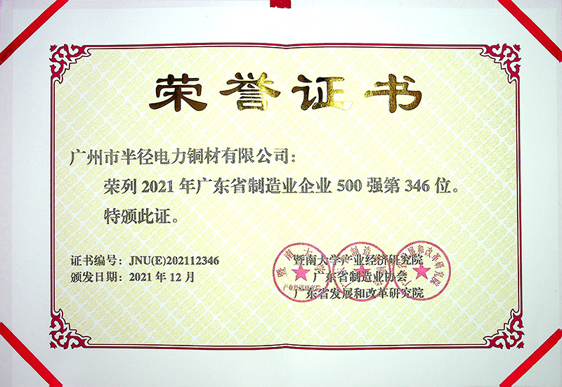 半徑連續(xù)12年榮登“廣東省制造業(yè)500強”榜單